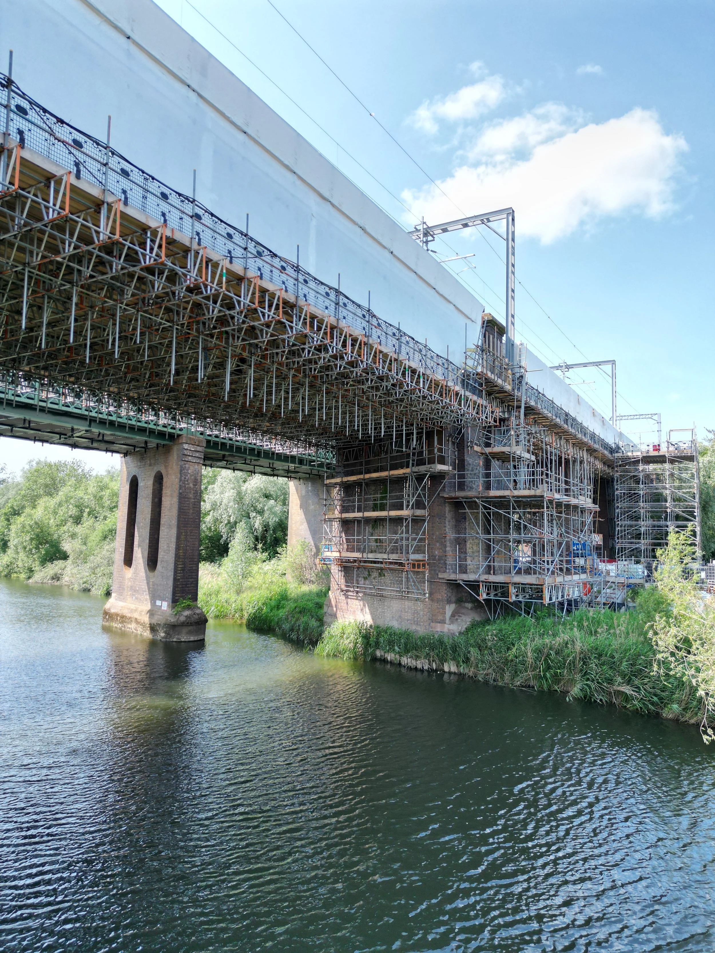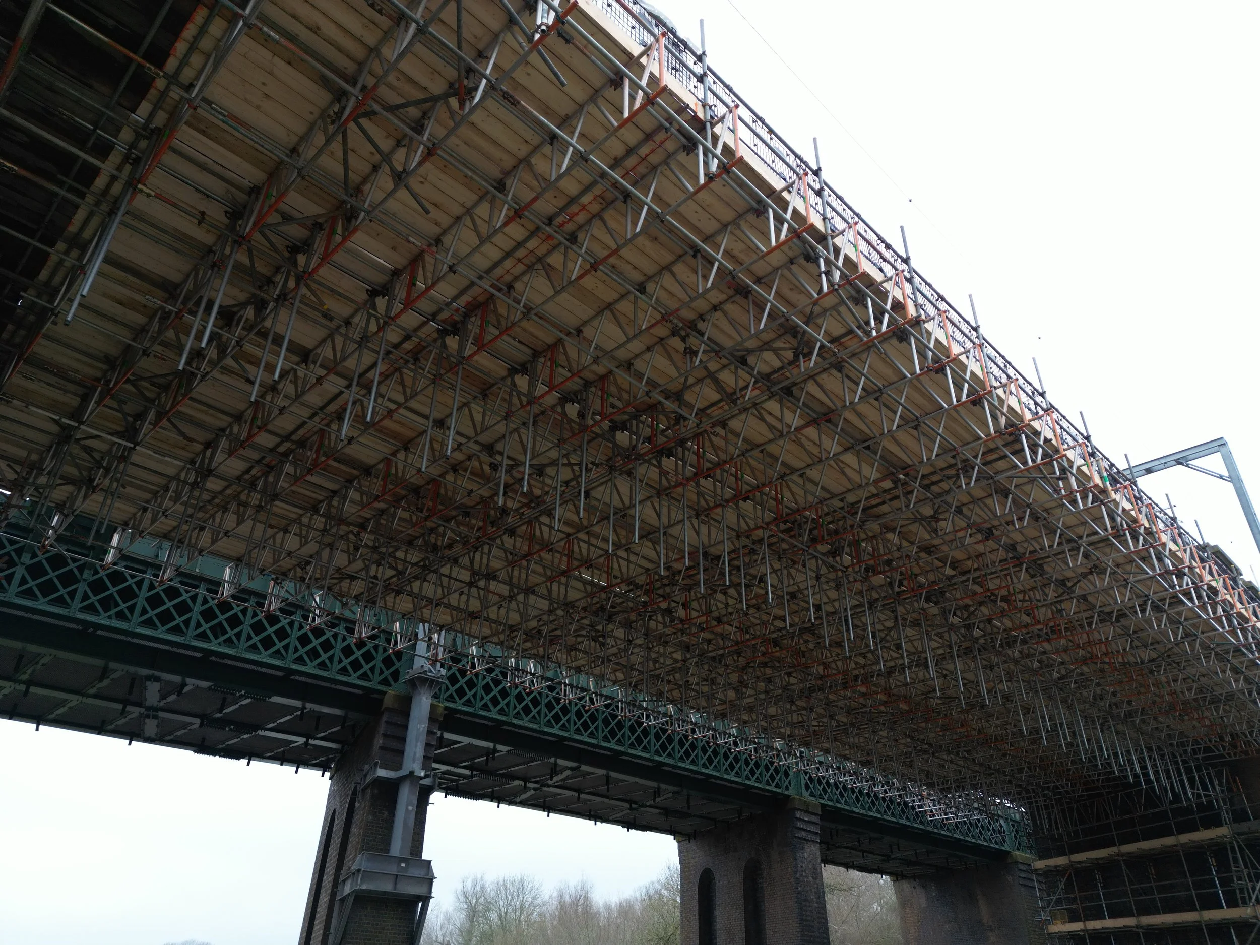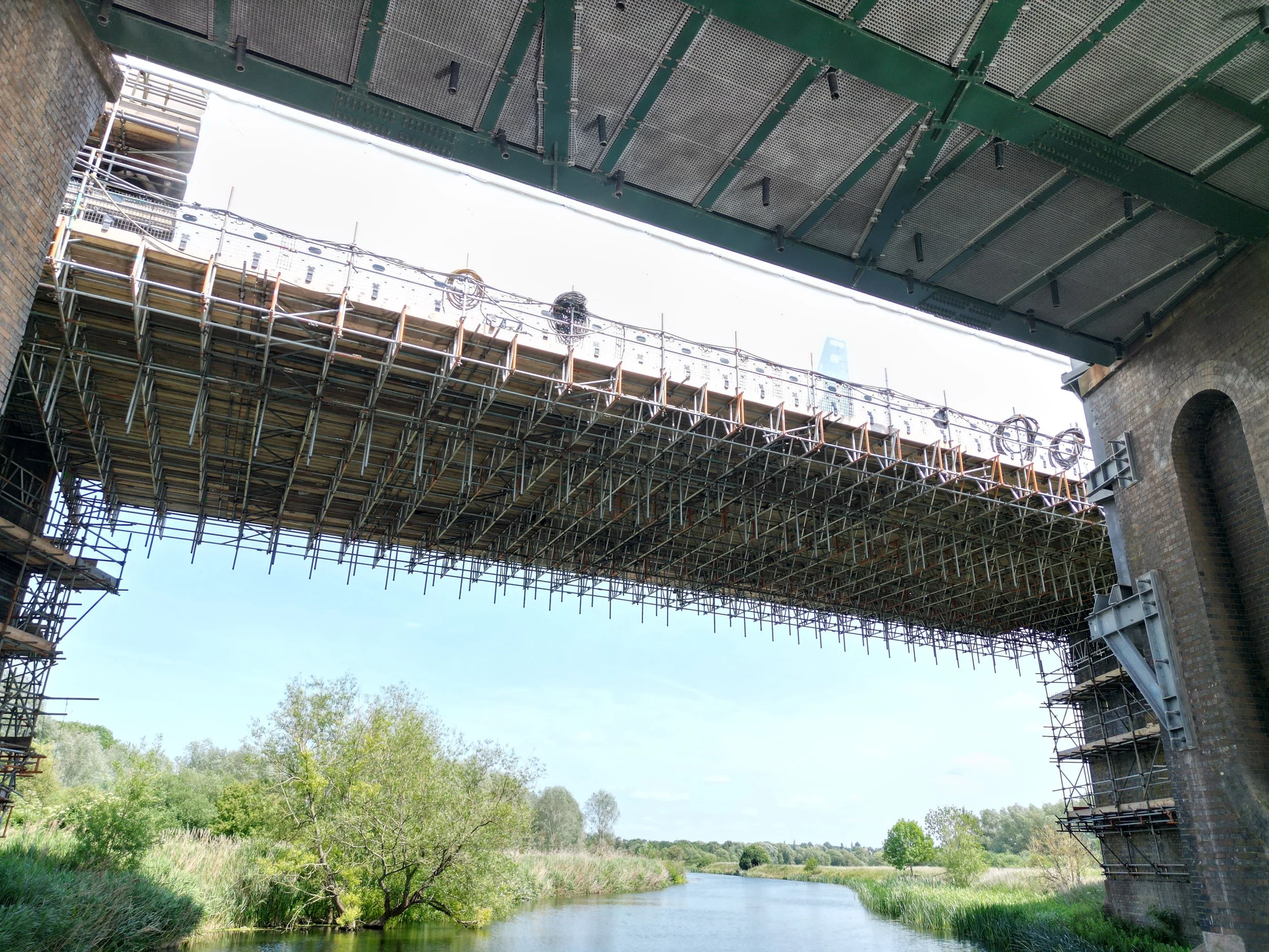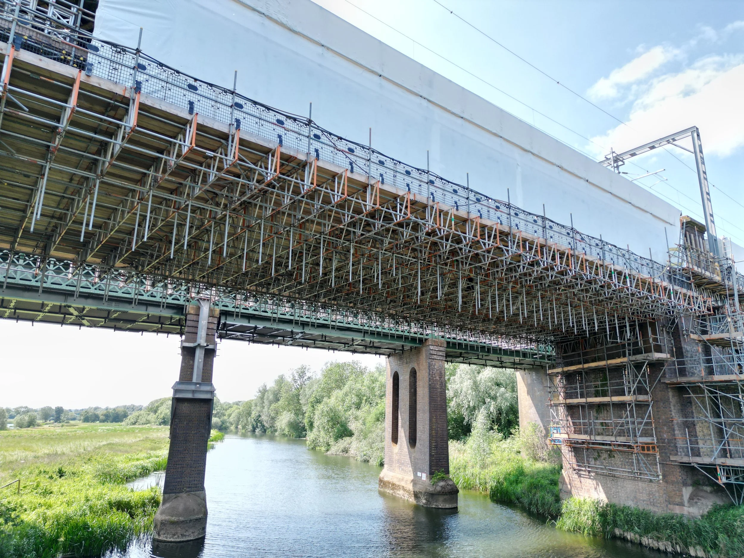 The Sharnbrook Viaduct, a key component of the Midland Main Line, required refurbishment to address corrosion and accommodate increased freight capacity. The viaduct's dated rivet plate construction presented a significant challenge for conventional scaffolding methods. LEV3L was contacted by Alltask to collaborate in developing an efficient solution.
